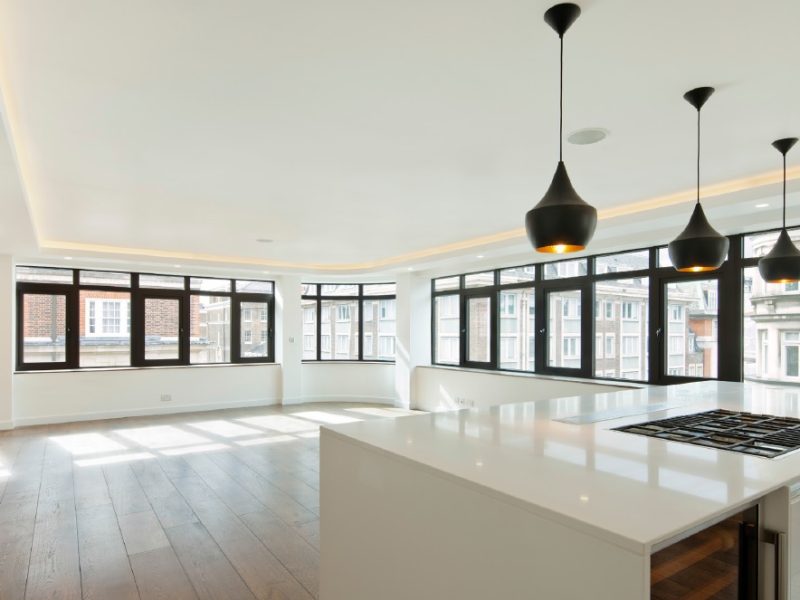 The Hallam Street project consisted of turning an 8 storey commercial premises into 6 high end luxury flats for the rental market. Complications presented themselves on this project due to the lack of available external space for service penetrations, an existing building littered with structural beams and columns along with having a pub located on the ground floor remaining in operation during the construction phase. The clever use of coffer lighting along with strategically placed bulkheads allowed us to keep the overall floor to ceiling height throughout a vast majority of the scheme.